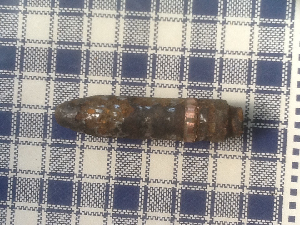 Ik zal melding maken van dit stuk munitie, en mij voortaan 2x bedenken daar te gaan zoeken, maar mocht dit nog een keer gebeuren dan zal ik het met rust laten en melden.