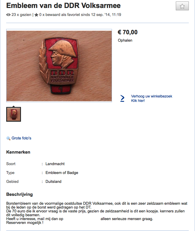 Deze "Besterabzeichen" zijn inderdaad ondertussen ietsje zeldzaam - maar dan €5-zeldzaam, duidelijk NIET €70,00! Voor dat bedrag kan je een hele doos kopen! In principe niets aan de hand natuurlijk - de verkoper zal wel in alle onschuld een hoge prijs op zijn embleem steken. Maar nee, niets van dat!