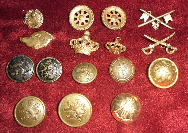 Belgische knopen en insignes van pré 1940 Wat krijgsgevangenenpost van Belgische militairen En de bijpassende knoopsgatinsignes van krijgsgevangenen