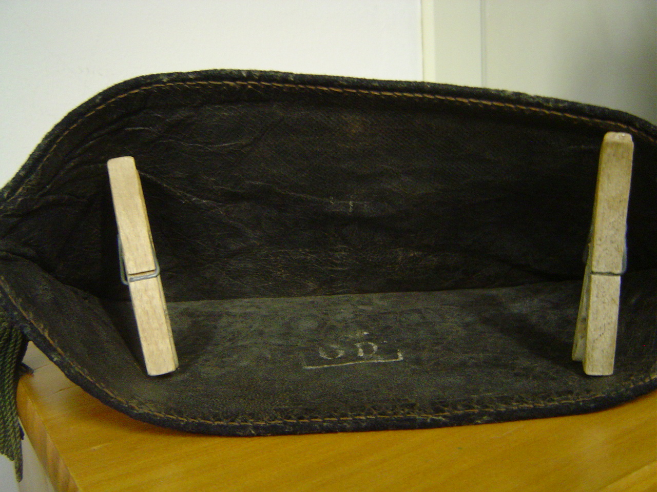 Vooral geen gaten of scheuren, het leder is nog soepel, de stiksels waarmee het leer in de muts is genaaid zijn op het eerste zicht ook origineel, er staat nog een stempel in waar ik momenteel nog aan het uitzoeken ben wat dit zou kunnen betekenen.