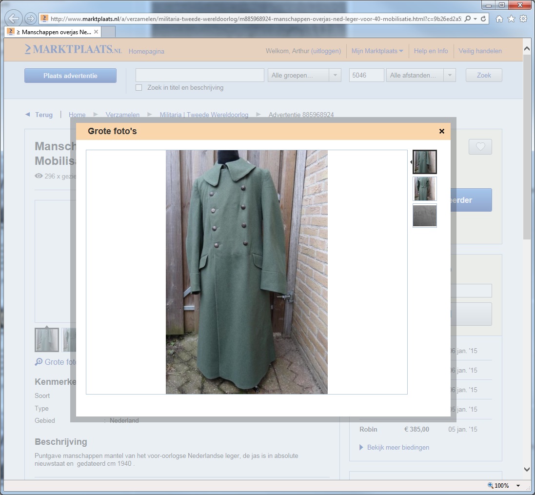 Op marktplaats staat een Nederlandse overjas te koop. Is de stempel wel correct. Wie kan mij vertellen of deze correct is?