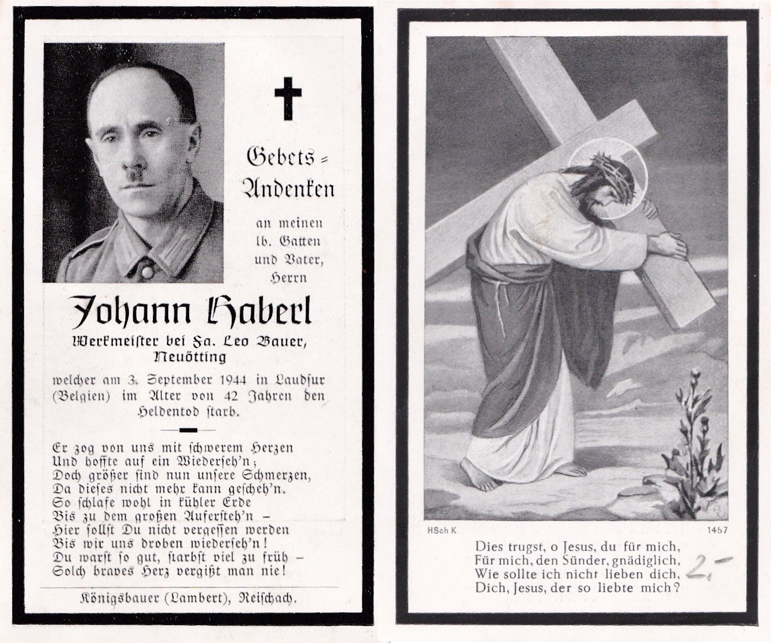 Weer een doodsprentje binnen gekregen. Kanonier Johann Haberl geboren op 3 Augustus 1902. En gesneuveld op 3 September 1944, in Laudsur België.