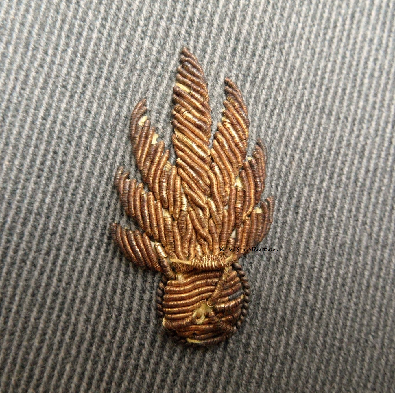Op de linkermouw zit het met gouddraad geborduurde embleem voor buitengewoon geoefend handgranaatwerper.