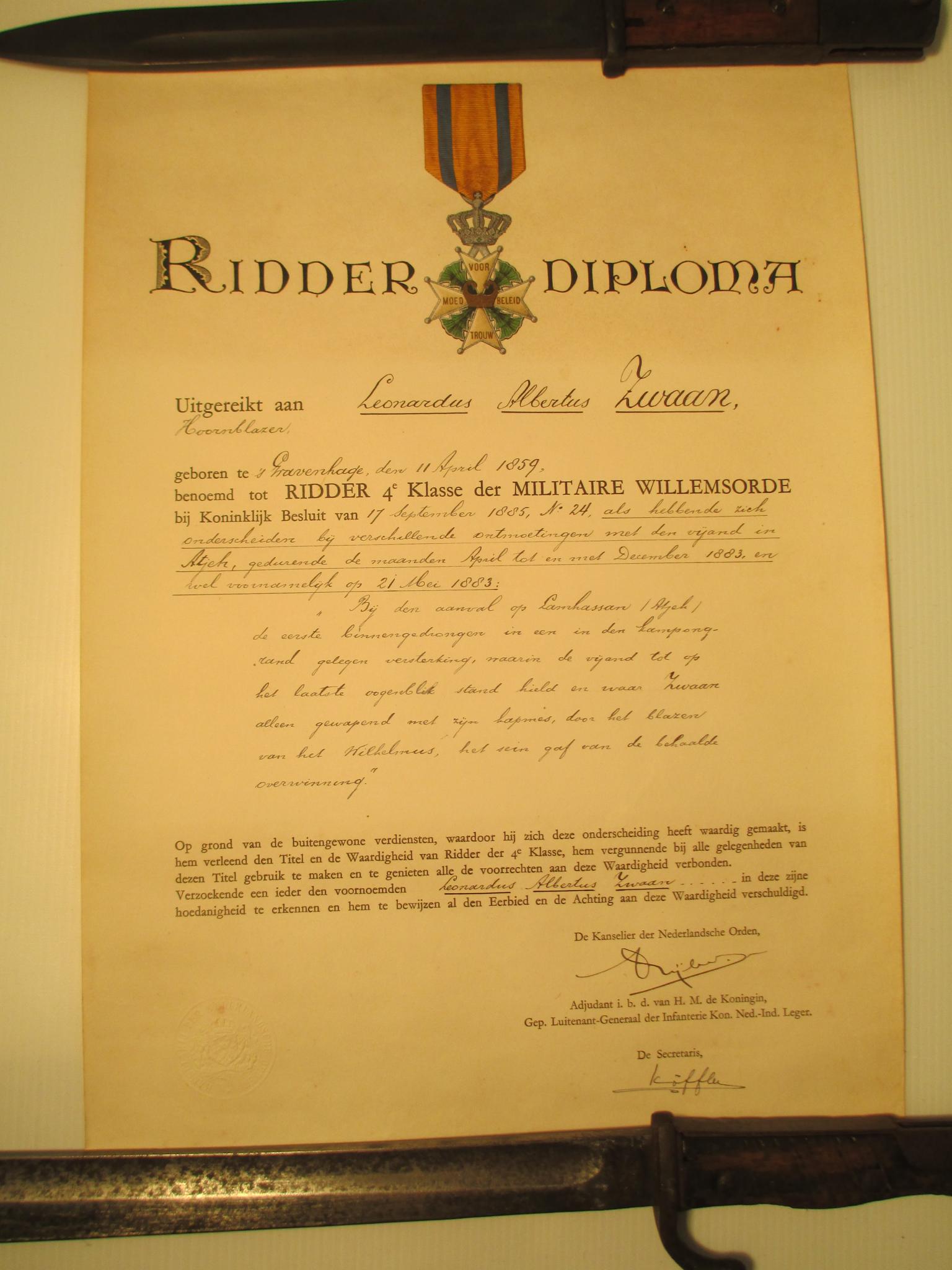Hij bevatte namelijk een hele berg documenten over mijn over-overgroot-opa(klopt dit?) L.A. Zwaan. Hij heeft tijdens gevechten in Atjeh in zijn MWO verdiend.
