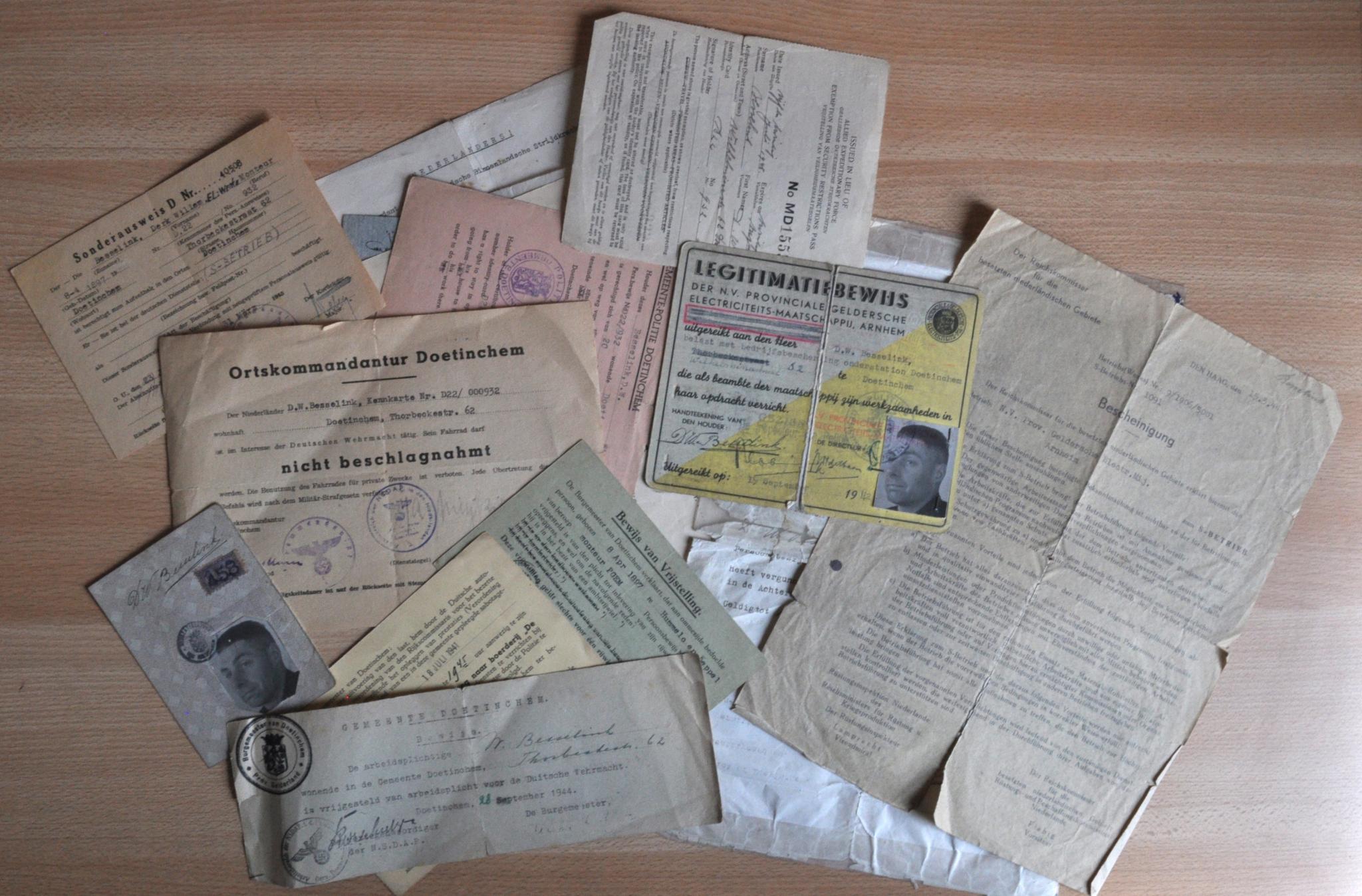 Heb 2 bijzondere setjes aan mijn verzameling kunnen toevoegen. De eerste documenten set is van de heer Besselink. Hij was monteur bij de Provinciale Geldersche Electriciteits-Maatschappij (PGEM). In de set zitten verschillende ausweises met onder andere een vrijstelling voor het inleveren van fietsen aan Wehrmacht soldaten.