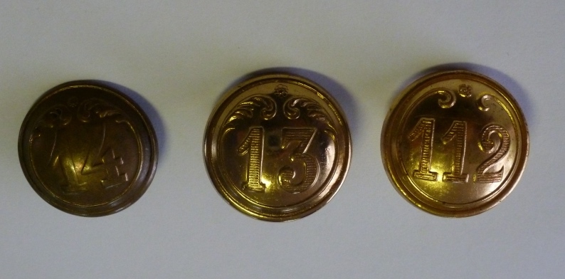 Ik weet enkel dat de Belgische nummer knopen gedragen zijn tot het invoeren van het kaki tenue (begin 1915).