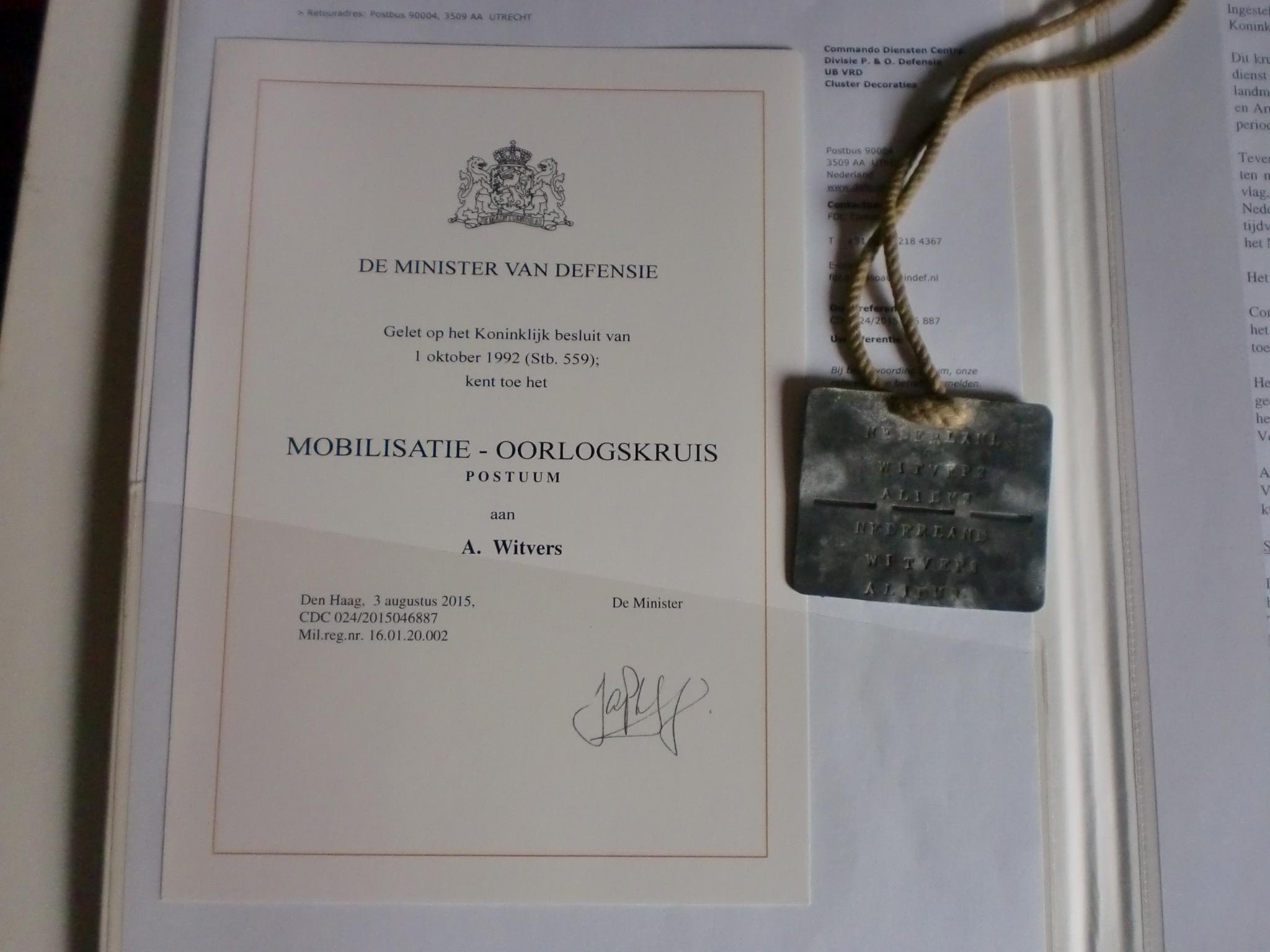 Tijdje terug kreeg ik via via zijn herkenningsplaatje en toen via de dochter deze medaille aangevraagd op 3 weken na had hij ook recht op de medaille Orde en Vrede......