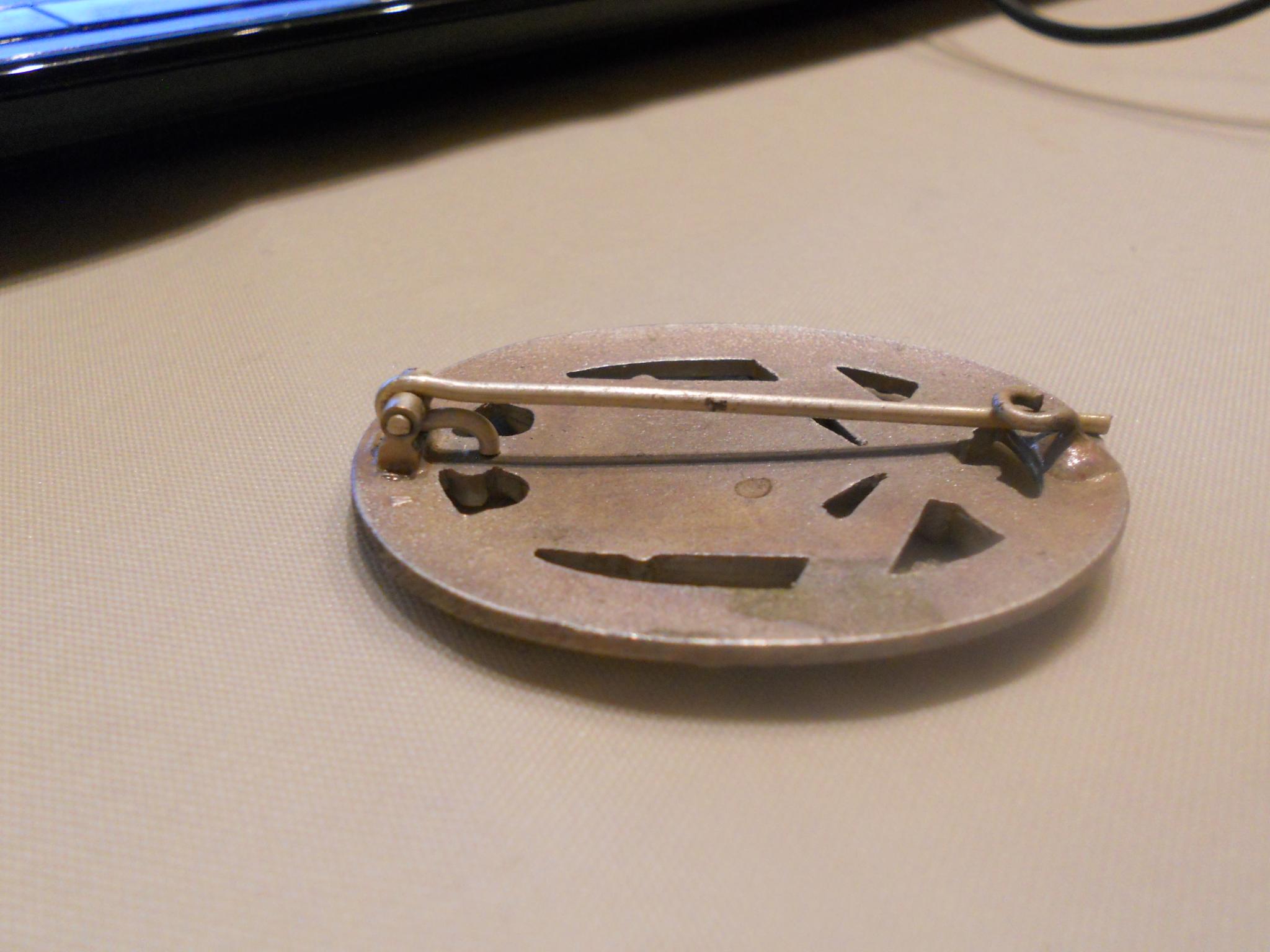 De foto's zijn niet ideaal belicht dus vertekend maar toch zou ik deze laten liggen. Ik heb geen goed gevoel bij de speld en verzilvering. Doet mij denken aan zeer goede repro's van Duitse orgine. Deze zijn inmiddels ook weer verbetert, maar deze heeft er veel van weg.
