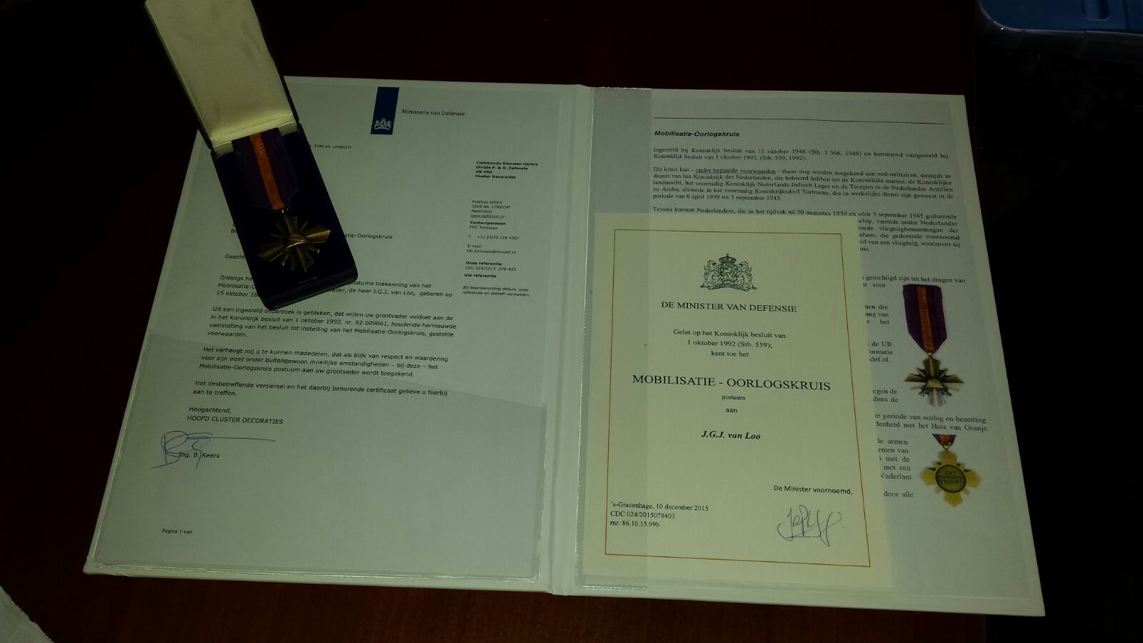 Vandaag weer een super mooie aanvulling gekregen bij het uniform van de heer van Loo majoor van de speciale bijzondere vrijwillige landstorm motordienst. Zijn postuum uitgereikte Mobilisatie herinneringskruis met oorkonde!