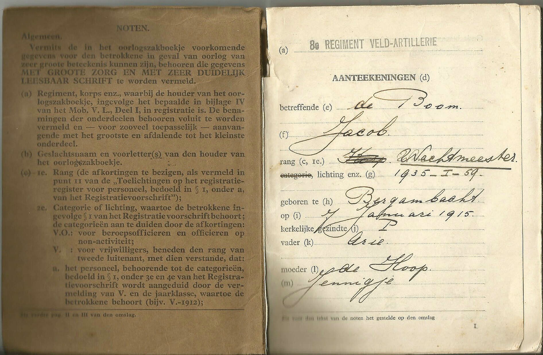 Ik heb ook een oorlogszakboekje, ID plaatje en ID bewijs van de landstorm van het 8 regiment veldartillerie.