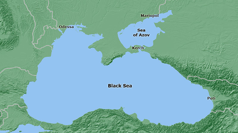 Overzicht van het Zwarte Zeegebied en de locaties van de havensteden: