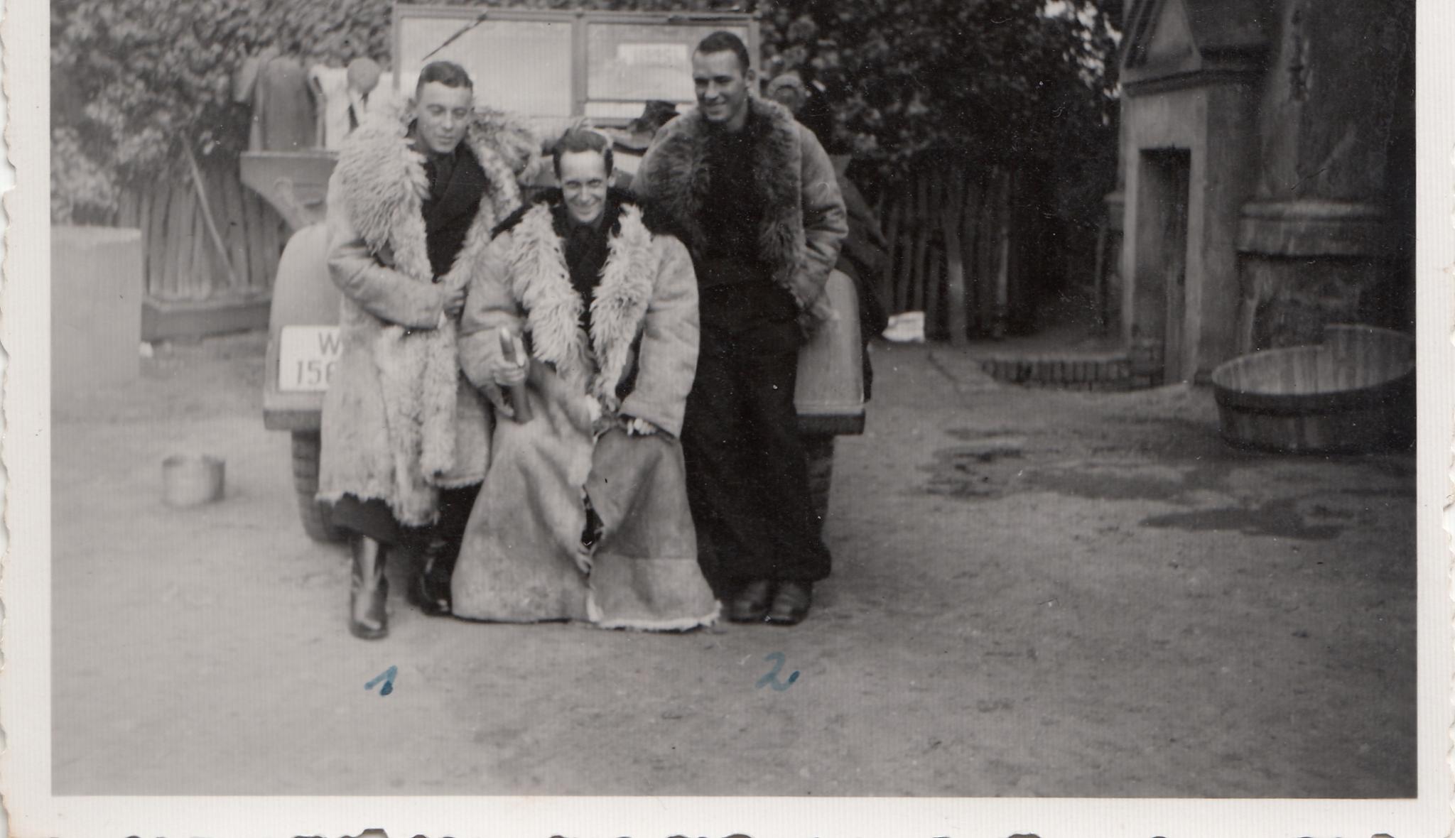 Lekker warm die bontmantels! Stelletje verweerde soldaten tijdens de opmars in Rusland en op een achtergrond een Panzer Kpfw 38 T met nummer B04