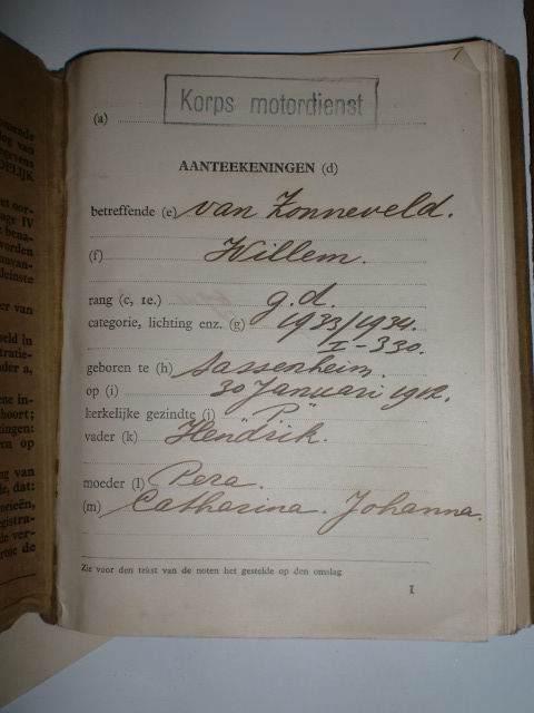 Zakboekje, Oorlogszakboekje en Herkenningsplaatje en een briefje van de Motordienst.