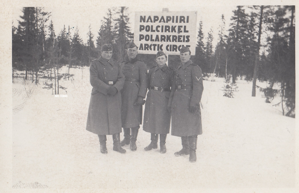 Vier Duitsers op de poolcirkel, vermoedelijk in Finland.