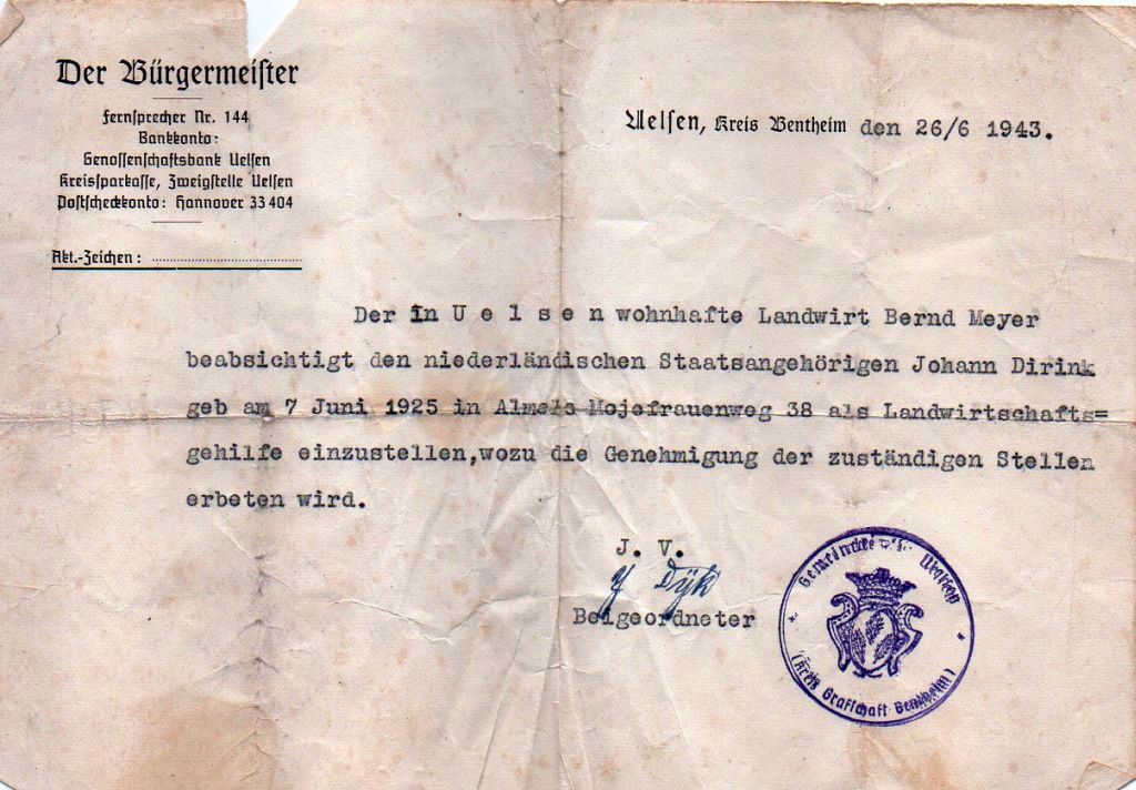 En een bewijs dat hij werkzaam was bij een boer net over de grens.