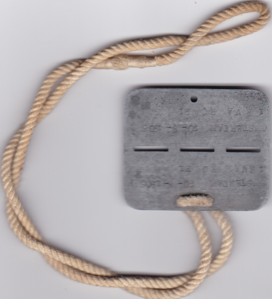 Herkenningsplaatje van W. du Chatinier, lichting 1920, 22 RI. Ingedeeld bij 1-22 Depot CBT en heeft actie gezien bij gevechten bij vliegveld Ockenburg.