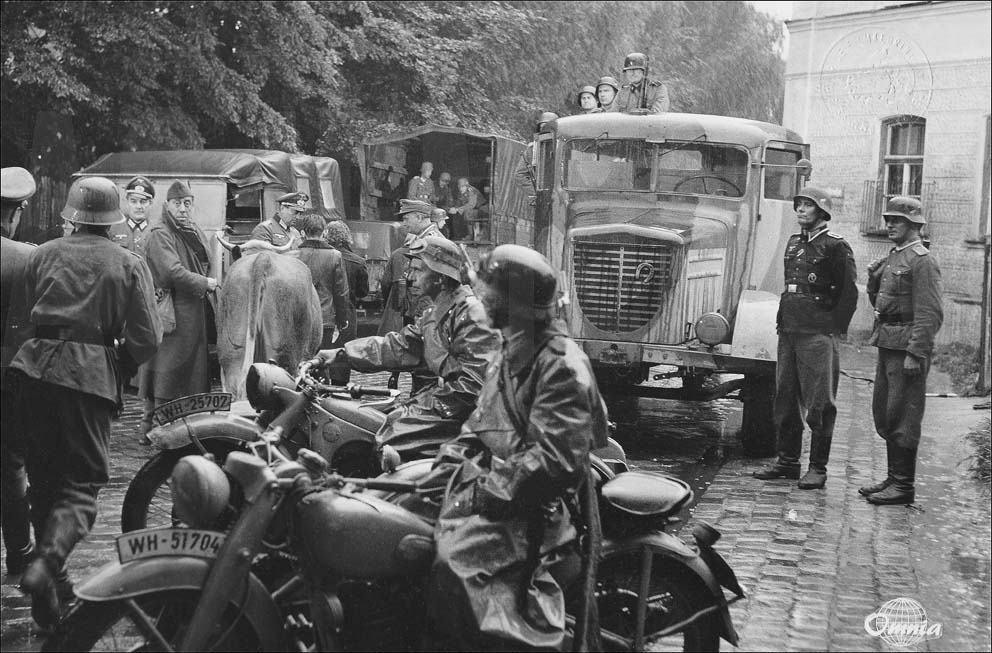 Gisteren kwam ik twee foto's tegen op een stand voor motoronderdelen. Hoewel de verkoper mij niets kon vertellen over de foto's had ik wel door dat het geen originele WOII foto's waren. Het waren duidelijk foto opnamen uit een speelfilm.