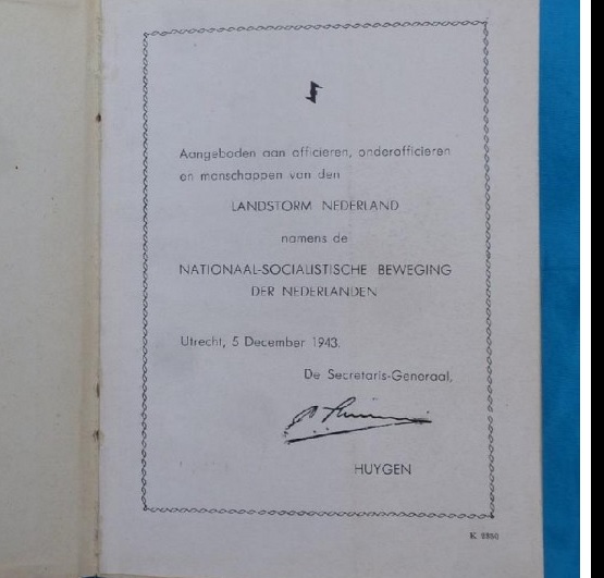 Of een zoals, Aangeboden aan Officieren, onderofficieren en manschappen van de Landstorm Nederland namens de Nationale Socialistische Beweging der Nederlanden op 5 december1943 de secretaris-generaal Huygen.
