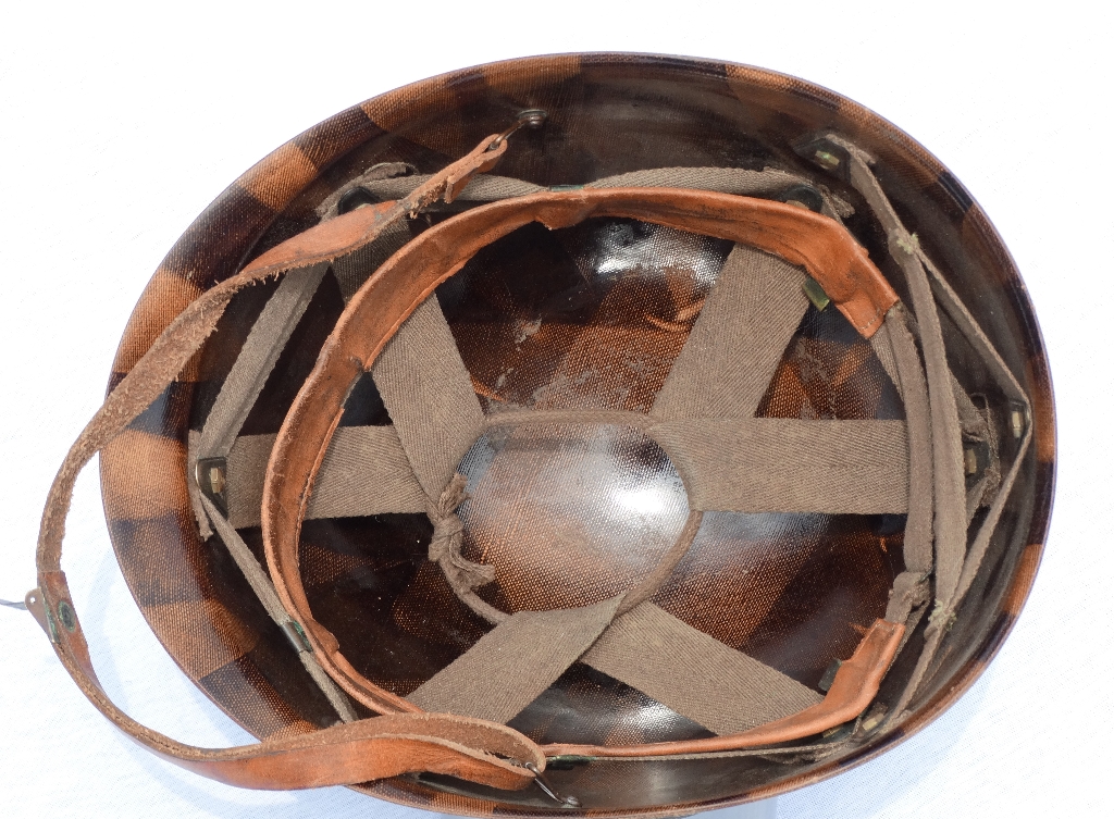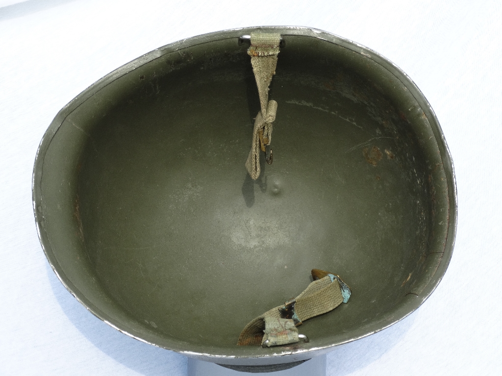 dit is de binnenhelm die erbij zat, voor mij is dit een nederlandse, spijtig genoeg zijn alle markeringen verwijderd, waarschijnlijk in een poging hem als originele usa helm te laten doorgaan