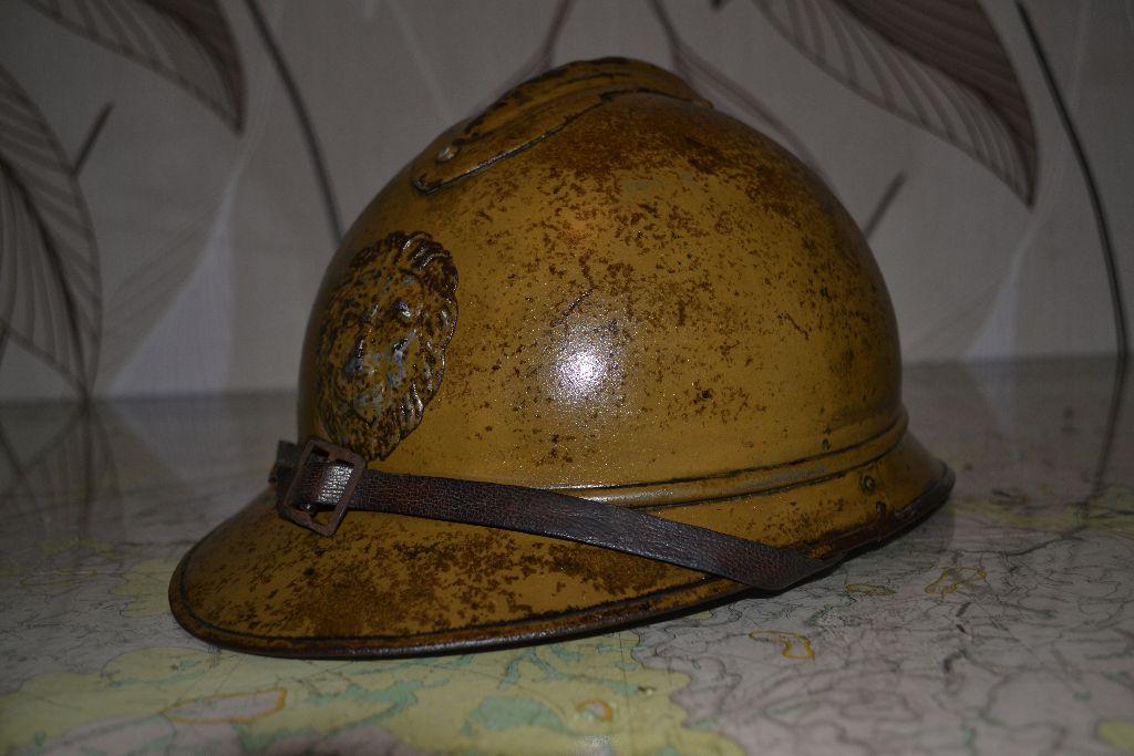 Een paar pagina's terug in dit topic zie je een Belgische m15 adrian staan, jammer genoeg is deze ooit overschilderd geweest maar na lang te werken aan de helm heb ik de originele kleur teruggekregen.