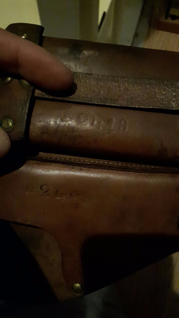 Een FN holster met CM stempel is al zeldzaam , een FN tasje nog zeldzamer , maar een nummergelijke set in een mooie lichtbruine kleur EN met een verhaal is uniek !
