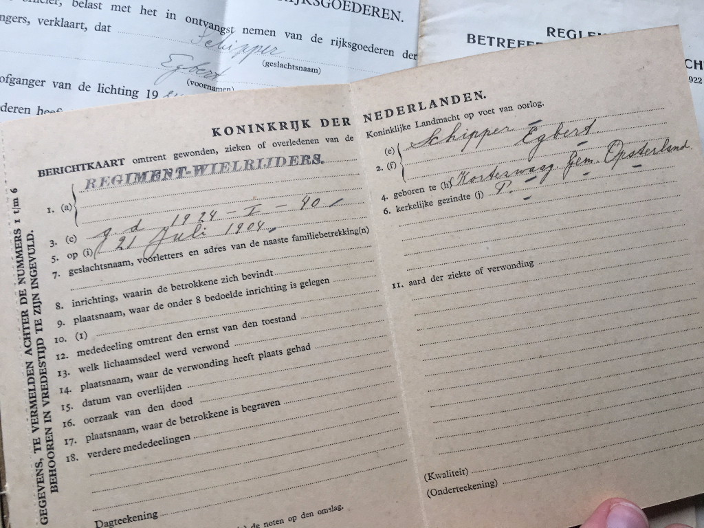 Op 11 juni 1943 heeft hij zich verplicht gemeld bij de Duitse instanties op de “Friesland” kazerne te Assen (Drenthe)