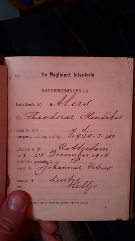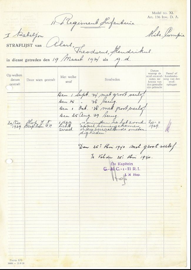 Op zijn straflijst is te zien dat hij bij het 1e bataljon zat bij kapitein Hop.