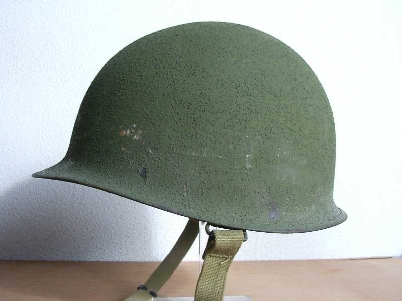 Met andere woorden, de helm zelf is WO2 maar de laatste kleur groen en de markeringen zijn na-oorlogs.