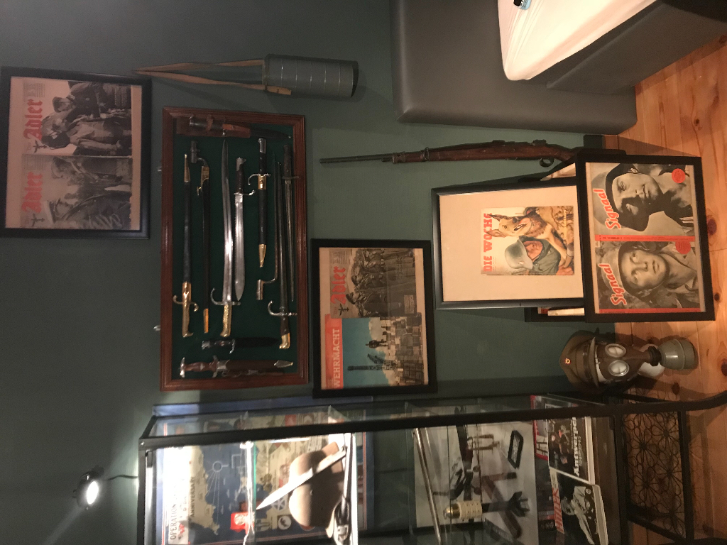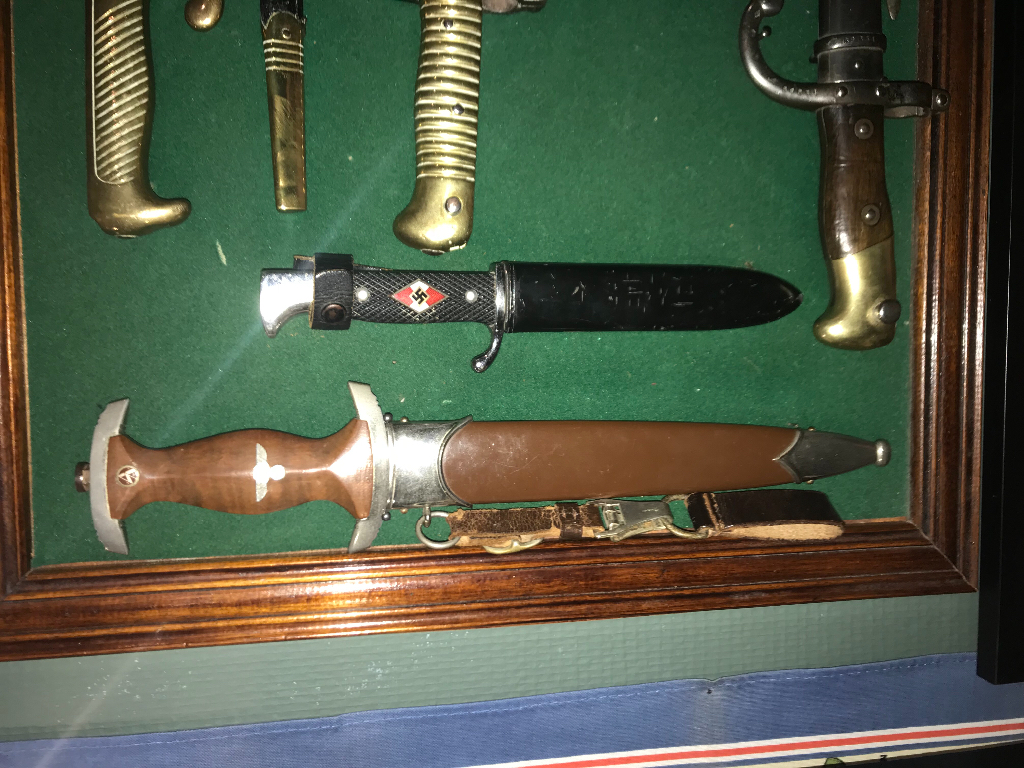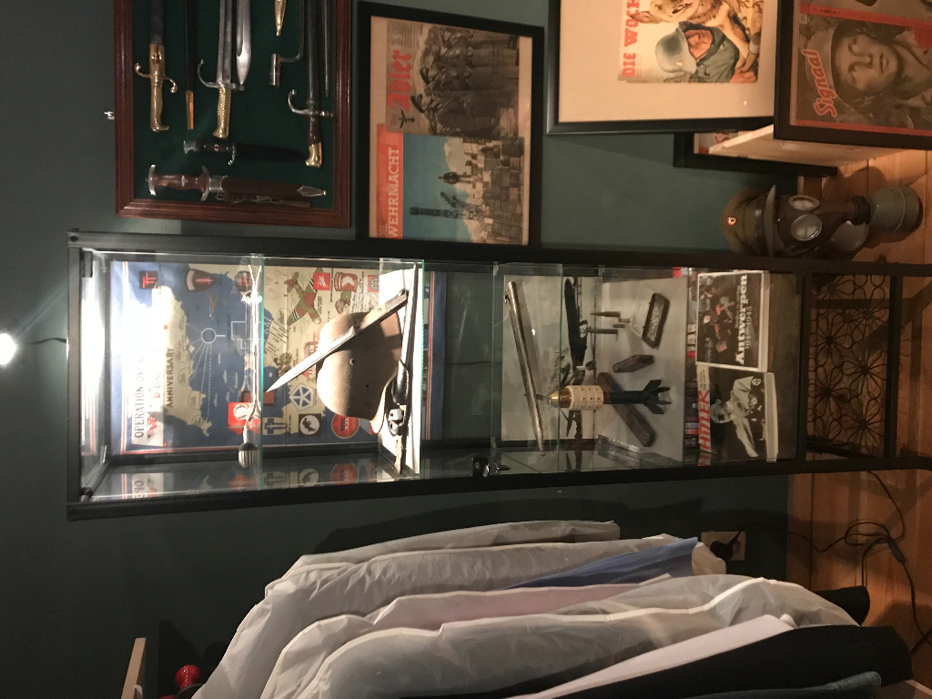 hallo iedereen. Ik ben ondertussen alleen gaan wonen en ik heb dus wat vitrinekasten bij. Ik heb ook twee vitrinekasten maar met wo1 objecten dus zal ik die elders posten in een andere gepaste topic. Op de twee foto"s zie je mijn overgrootvader die gediend heeft bij het brits leger tijdens Wo2. geniet van de foto"s en als er vragen zijn stel ze gerust .