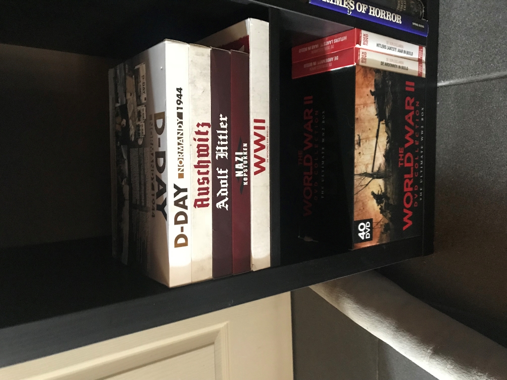 hallo iedereen. Ik ben ondertussen alleen gaan wonen en ik heb dus wat vitrinekasten bij. Ik heb ook twee vitrinekasten maar met wo1 objecten dus zal ik die elders posten in een andere gepaste topic. Op de twee foto"s zie je mijn overgrootvader die gediend heeft bij het brits leger tijdens Wo2. geniet van de foto"s en als er vragen zijn stel ze gerust .