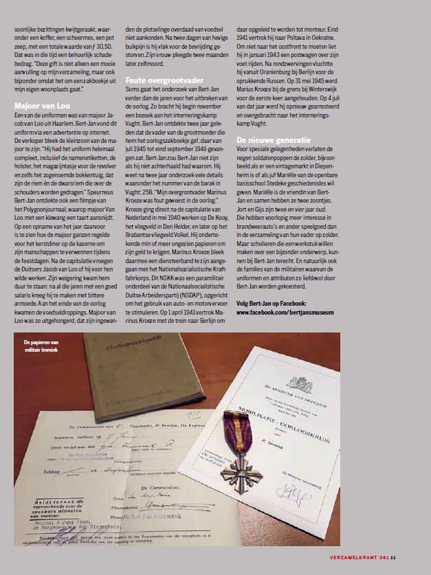 De week 4 hele bladzijden in het blad voor de verzamelaars De Verzamelkrant met mijn verzameling. Met o.a over mijn opa, sergeant van der Hart, majoor van Loo. Echt een heel mooi ''stukje'' geworden!
