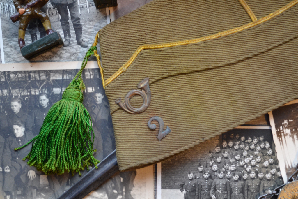 De mooiste en zeldzaamste stukken van de Garde civique die ik heb, staan goed stofvrij in de kasten, maar dan is er soms geen plaats meer voor de minder zeldzame stukken, deze moeten dan in de wachtkamer tot er genoeg materiaal is om een nieuwe kast te vullen.