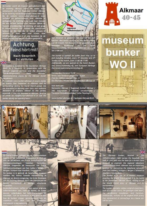 Op de website bunker-alkmaar.nl is inmiddels een begin gemaakt met het plaatsen van verhalen en gebeurtenissen over Alkmaar in oorlogstijd. De stichting is op zoek naar mensen die een verhaal hebben over Alkmaar tijdens WO2. Maar ook met mensen die voorwerpen hebben uit die tijd die zij willen afstaan of uitlenen, wil de stichting graag in contact komen. Dit kan via de website of bij de bunker op een dag dat het museum geopend is.