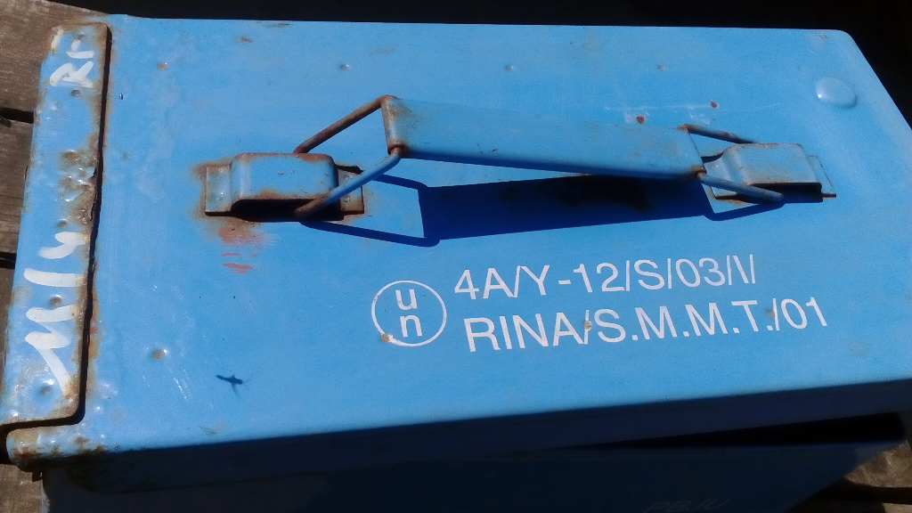 Mijn vermoeden is dat het munitiekistje oorspronkelijk van Amerikaanse makelij is. Een jaartal durf ik er niet aan te geven maar het zal na 1950 zijn. Mogelijk zelfs jaren tachtig.