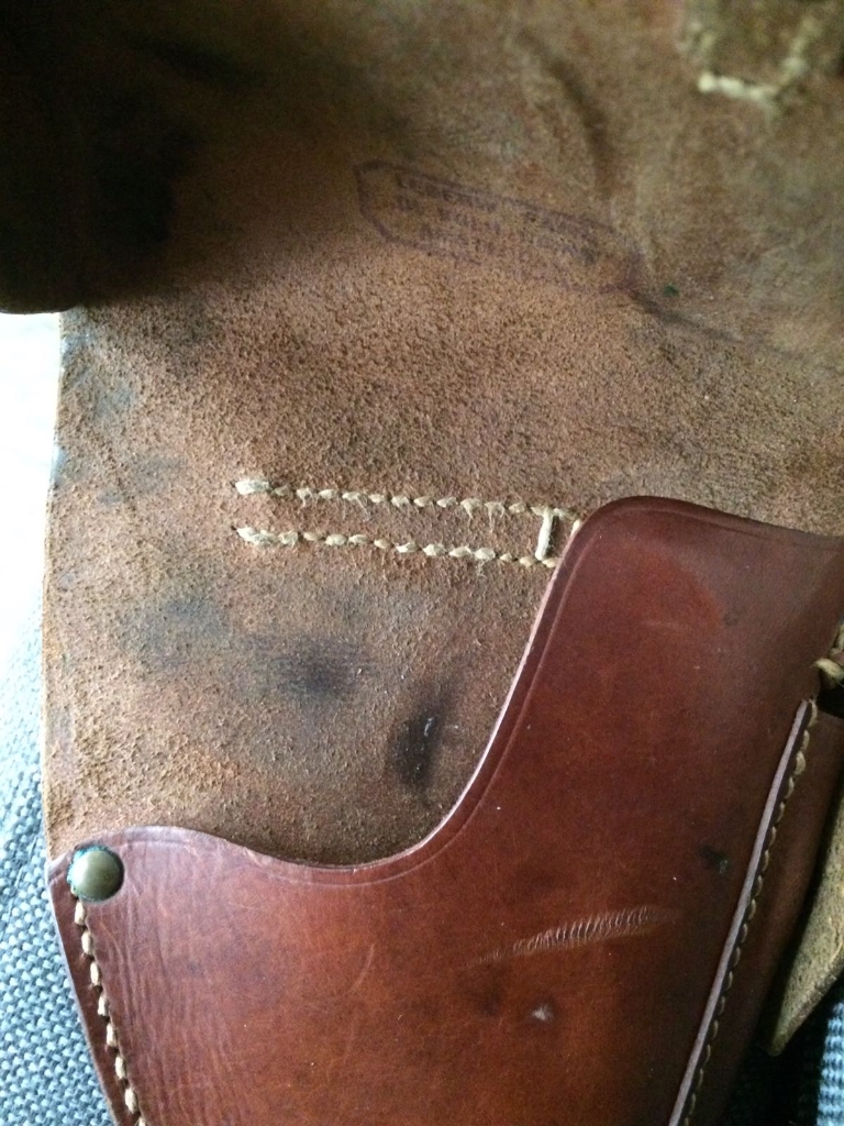 De eerste is al niet de minste: een FN holster, gemaakt in de lederwarenfabriek De Volharding uit Amsterdam. Recht boven dit stempel staat een rood CM stempel (op de foto slecht zichtbaar).