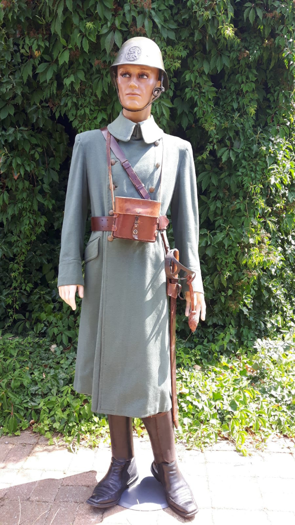 De overjas (geleverd in okt 1937) van vaandrig Sigurd Pasma, geboren op 23 september 1911 te Losser Overijssel. De heer Pasma gaat in oktober 1937 in dienst nadat dat 6 keer is uitgesteld ivm zijn studie. Hij bestelt deze jas bij een van de toenmalige herenmodemagazijnen van Pieter van den Brul, die in meerderde steden in Nederland vestigingen had. Op 1 januari 1940 wordt hij benoemt tot vaandrig en op 11 april 1940 mag hij zich melden als B.O.-U.V. (Buitengewone Oproep Uitwendige Veiligheid) Tijdens de meidagen van 1940 is hij pelotonscommandant bij de 8e compagnie luchtdoelmitrailleurs. Dat gestationeerd was bij de Bruinenburgersluis het frontgedeelte tussen grofweg Amersfoort en Woudenberg in de Grebbelinie. Na het terugtrekken van het Veldleger in de avond van de 13e mei stond de compagnie in de omgeving van Loenen, Het 2e peloton bij de begraafplaats van Loenen. De 8e compagnie luchtdoelmitrailleurs telde geen gesneuvelden . Het waarschijnlijke aantal neergeschoten vliegtuigen is 3 volgens zijn verslag door de gezichtsbelemmering was het moeilijk om op tijd het vuur te openen. Ze werden nog wel beschoten door een vliegtuig maar er vielen gelukkig geen gewonden. De 8e compagnie luchtdoelmitrailleurs was ingedeeld bij de 8e divisie van het IVe Legerkorps. Zijn commandant was tijdens de mobilisatie H. Hazelhoff (reserve kapitein). Tijdens de oorlog was de heer Pasma actief in het verzet net als zijn 2 broers waarvan er een werd opgepakt wegens verzet tegen de Duitsers En op 21 april 1945 is hij overleden in het concentratiekamp Wőbbelin in Duitsland (Landkreis Ludwiglust Neuen-gamme). Zijn andere broer werd onderscheiden met het Verzetsherdenkingskruis Helaas zijn de vaandrig strepen er in de loop der jaren afgehaald maar gelukkig nog wel zichtbaar.