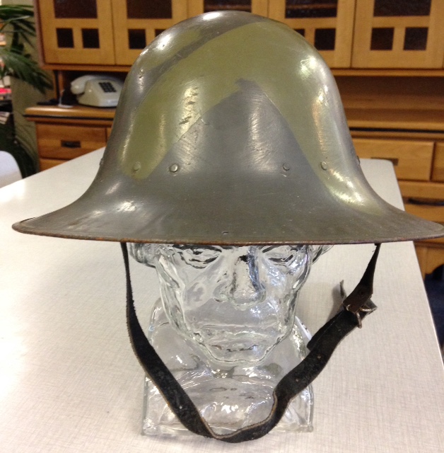 Ik heb het idee dat deze Britse Zuckerman helmet is doorgebruikt door de Nederlandse BB (Burger Bescherming). Ik baseer dit op het model binnenhelm. Deze heeft een binnenhelm naar het model van een Nederlandse M34 helm. Als ik foto's van Britse Zuckerman helmets bekijk dan hebben deze een ander model binnenhelm; https://en.wikipedia.org/wiki/Zuckerman_helmet .