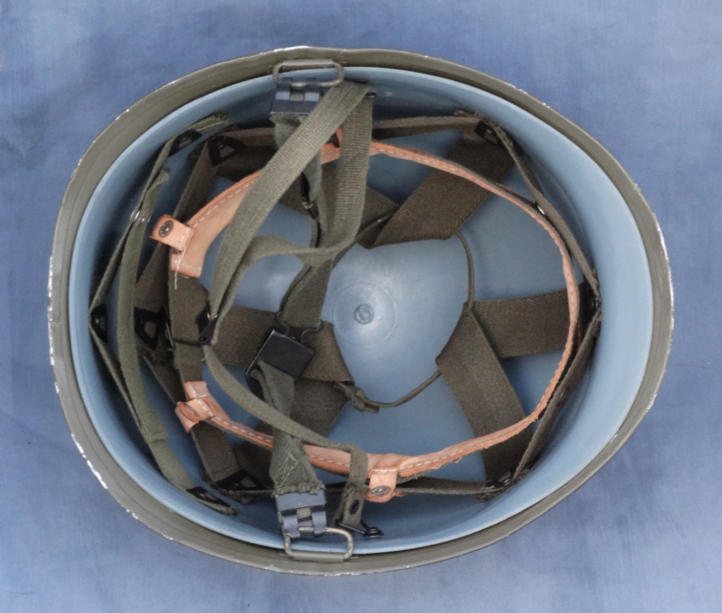 De helm ziet er wel uit als een Nederlandse M53 helm. Staat er geen partijnummer of jaartal in de rimband ingeslagen?