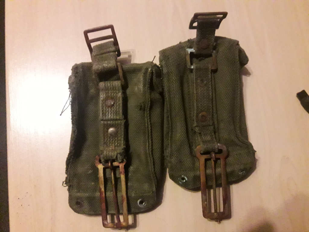 Deze tassen zijn gemaakt door een dubbele FAL-magazijntas van de mariniers te splitsen en elke helft op een oude koppelpassant te zetten. Hiermee hadden de soldaten twee extra magazijnen tot hun beschikking.