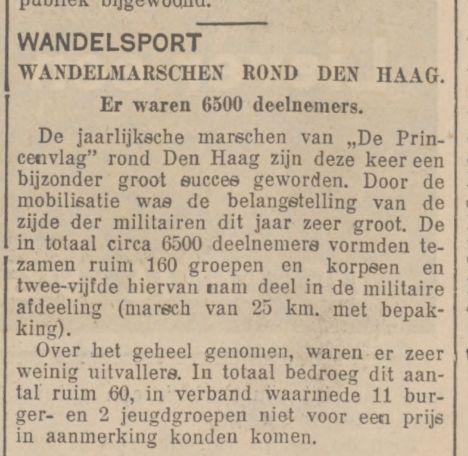 Op 2 mei 1940, 8 dagen voor de Duitse inval organiseerde de N. J. V. (Nationaal Jongeren Verbond) hun jaarlijkse marsch op Hemelvaartsdag. Kort daarvoor had het opperbevelhebber van Land- en Zeemacht (O.L.Z.) bekend gemaakt dat militairen niet aan plaatselijke marschen mee mochten deelnemen. Maar voor deze marsch werd een uitzondering gemaakt door de O.L.Z. Daardoor melden zicht enkele tientallen militairen in detachementen waaronder enkele van meer dan honderd man sterk. De marschleiding had een groot aantal vergulde plaquettes bedoeld als eervolle vermelding beschikbaar gesteld voor uitblinkende militaire detachementen. Bij het opstellen van de marschformatie melde zich een groep die " 't Geuzenvendel" heette en was ongeveer 50 man sterk. Het bleek dat ze voor deze gelegenheid een nieuwe naam hadden gekozen want vroeger heette deze wandelvereniging “Paraat" Op bevel van de politie moest dit " 't Geuzenvendel" zich verwijderen omdat ze klaarblijkelijke onsportief bedoelingen hadden. S' avond bij terug keer vond nog een incident plaats een groep die zich de "Blauwvoet" noemde. Een wandelgroep met een Jeugdstorm, N.S.B.-instelling. Na de speech van kolonel Scharroo verzocht hij de aanwezigen het Wilhelmus te zingen. Tijdens het zingen bracht deze groep een soort N.S.B. groet wat door het bestuur verboden was. Er ontstond enig tumult toen ze de zaal niet wilden verlaten. Maar even later verlieten ze toch in marsformatie de zaal.