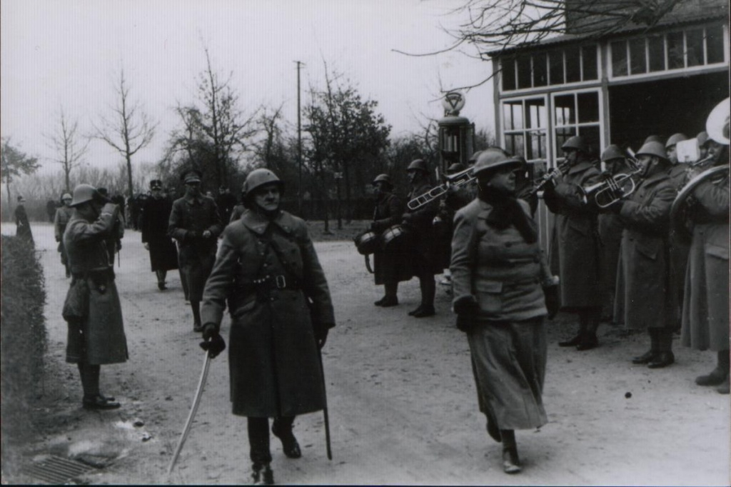 Ik ben bezig met een oude foto aan het inkleuren. Deze foto is in februari 1940 gemaakt in een dorp vlakbij Nijmegen. Weet iemand misschien welke kleuren ik moet gebruiken hiervoor? Had het muziekkorps andere kleuren?
