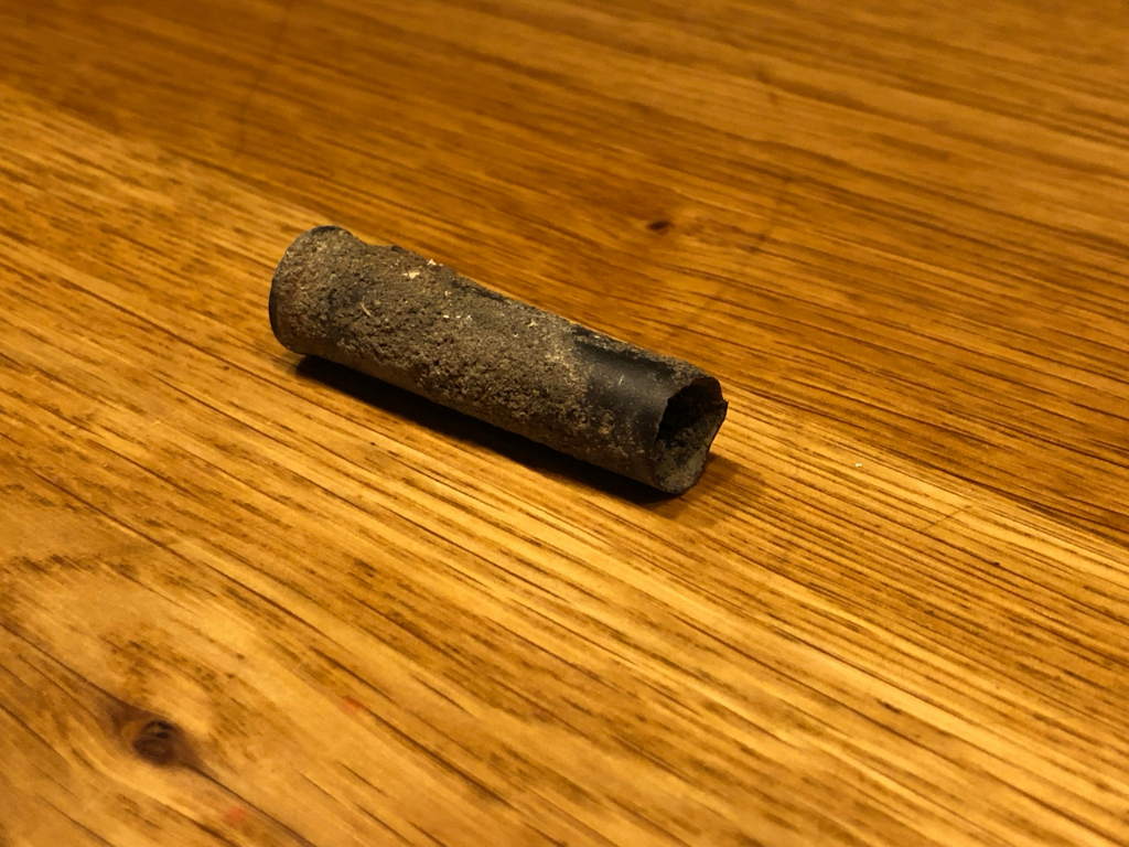 Diameter huls is 10 (eind) tot 12 (voet) en hij is 45 mm lang maar ik denk dat er een deel ontbreekt.