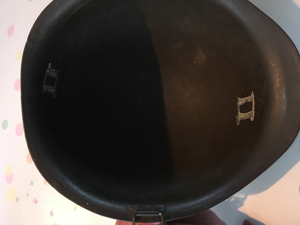 Deze helm is een vroege Verblifa productie serie, te zien aan de witte stempel in de helmbol: KL 1953.