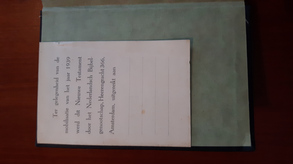In mijn verzameling bevinden zich een 6 tal Bijbeltjes. 5 daarvan zijn er uitgegeven tijdens de mobilisatie van 1939-1940.