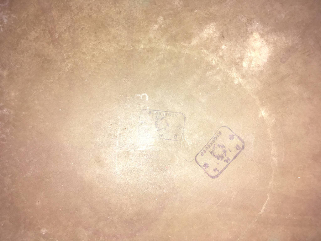 Leuke Afgekeurd stempels aan binnenzijde, witte Romeinse cijfers 2 aan de binnenzijde en ook gestanst boven de kinriembevestigingen.