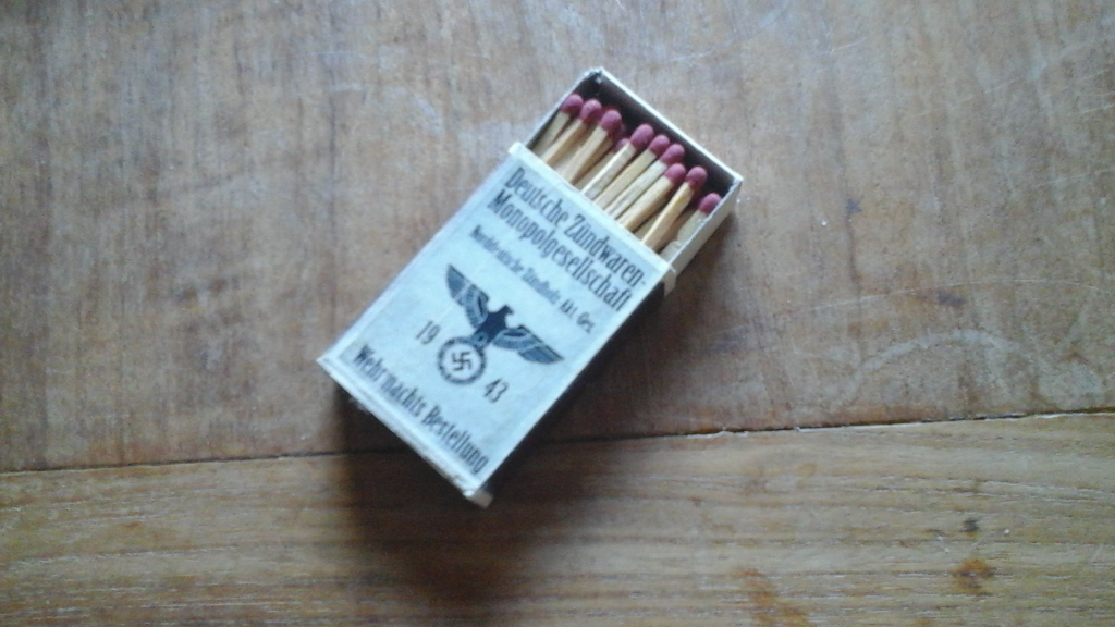 Lucifersdoosje komt uit een serie die een paar geleden te koop was. Het originele doosje is van hout en de steeltjes zijn paars met gele kop (tenminste, de originelen die ik zag bij een verzamelaar)