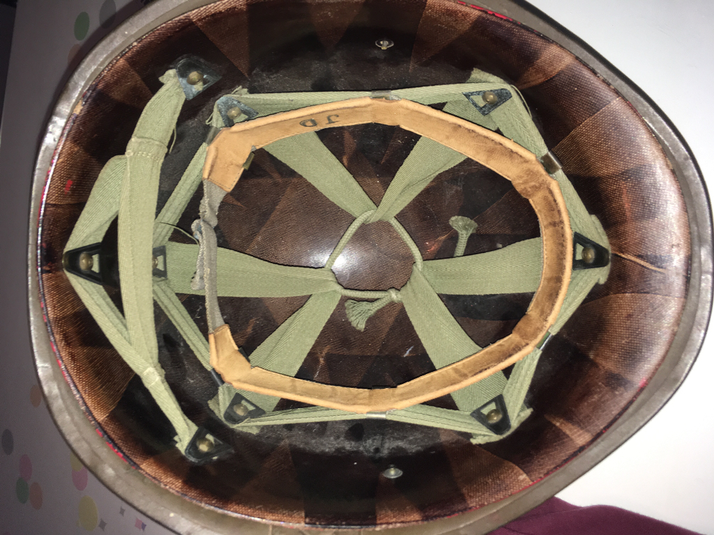 Deze helm is een vroege Verblifa productie serie, te zien aan de witte stempel in de helmbol: KL 1953.