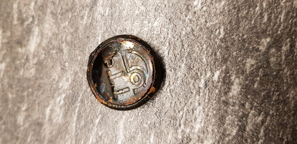 Is volgens mij inderdaad een knoop. De bodem met oog is eraf. Vanaf 1955 dit model logo op de knoop in gebruik. Echter in 1974 ondergaat de knoop een kleine verandering. Op de rand van de knoop is een kleine opstaande rand en die is er niet op de versie van 1974. Ik vermoed dat deze knoop van na 1974 is,