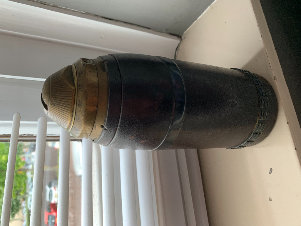 Gezien de dunne wanddikte en de plaat die los in de granaat zit verwacht ik dat het een schrapnel granaat is geweest.