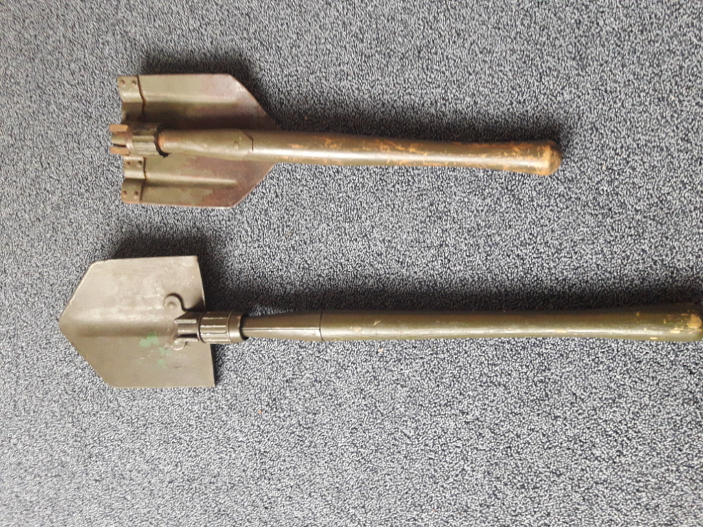Dit model pioniersschep is al vaker besproken geweest op dit forum. Met name omdat het een sterke vergelijking heeft met de Duitse WOII Klappspaten. Om die reden wordt de Nederlandse naoorlogse variant nogal eens aangeboden als Duitse WOII Klappspaten zijnde. Gelukkig zitten er verschillen tussen de varianten. Ook behoort er bij de Duitse WOII variant een ander model foedraal.